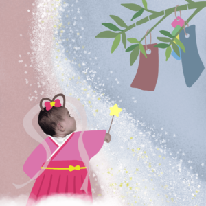 赤ちゃんの写真に使える!七夕(織姫)の寝相アート風イラスト