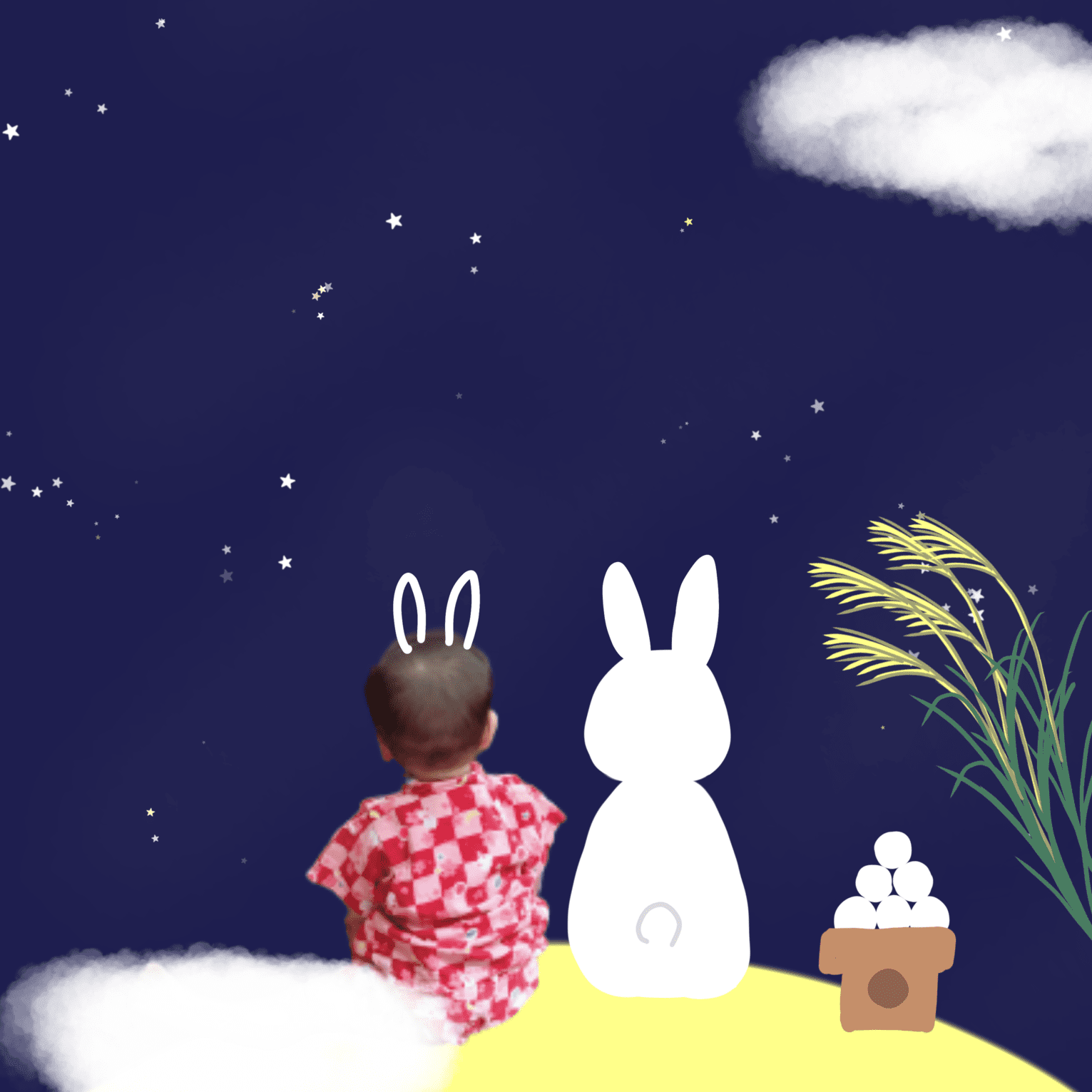 赤ちゃんの写真に使える!お月見(十五夜)の寝相アート風イラスト